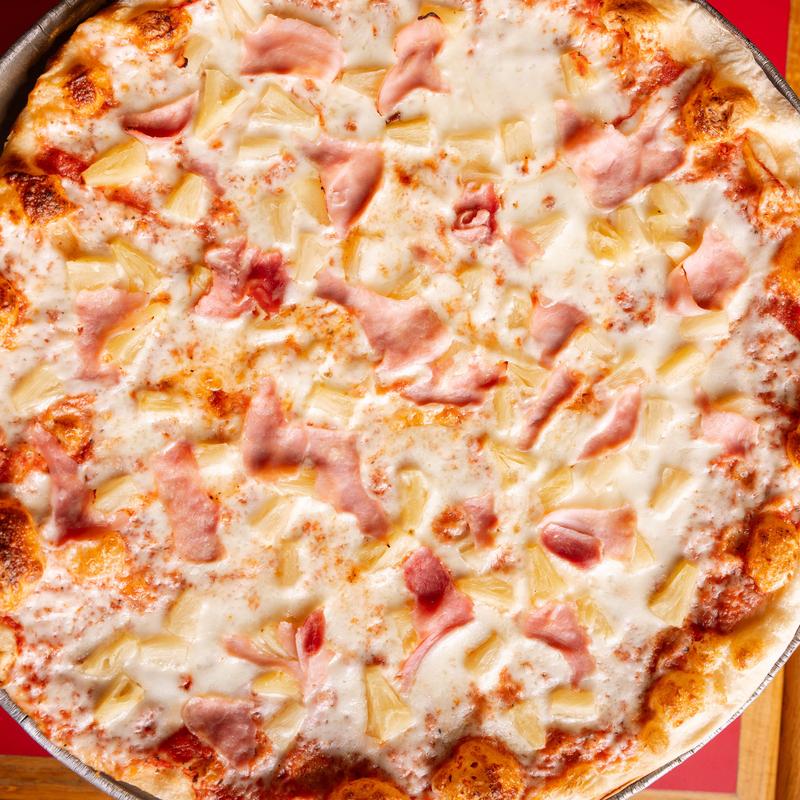 Medium 12" (Serves 1-2) $20.95 | Large 16" (Serves 2-4) $23.95 | X-Large 18" (Serves 3-5) $26.95 • Ham, pineapple, tomato sauce, and mozzarella